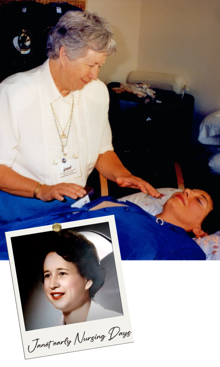 Throughout her 43-year nursing career, from the U.S. Navy to emergency rooms to home health, Janet witnessed firsthand the healing power of presence and gentle, intentional energetic touch. She saw that patients responded not only to medical interventions, but to the energetic support, comfort, and connection created through mindful care.